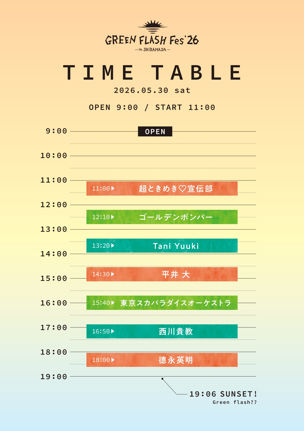 「GREEN FLASH Fes 2026(グリーンフラッシュフェス)」タイムテーブル解禁!