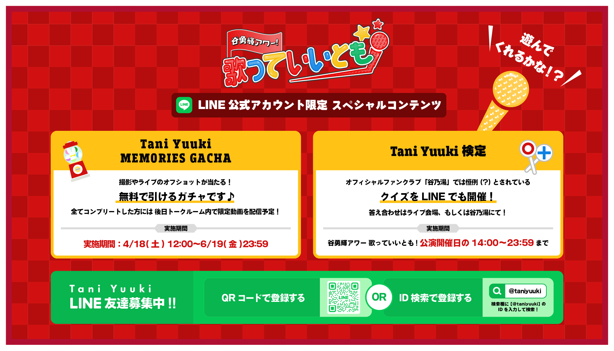 『谷勇輝アワー 歌っていいとも! ファンクラブツアー2026』の開催を記念して、4/18(土)からLINE公式アカウント限定キャンペーンの実施が決定!